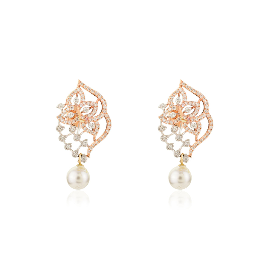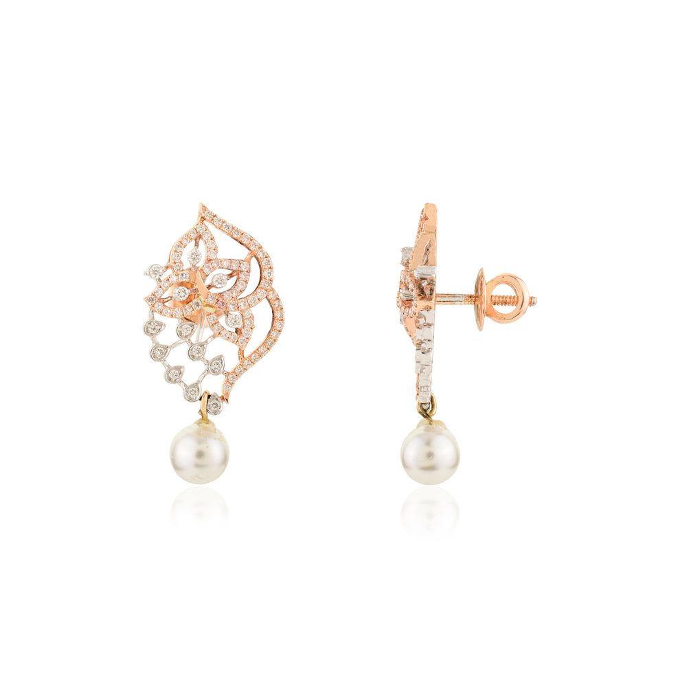 Elevate your elegance with these Rose Gold Diamond and Pearl Drop Earrings. Expertly crafted, they combine the warm radiance of rose gold with the timeless beauty of diamonds and lustrous pearls. The delicate drop design ensures graceful movement, making them perfect for both sophisticated occasions and everyday refinement. These earrings provide a subtle yet striking way to enhance your look with a blend of classic luxury and modern style.